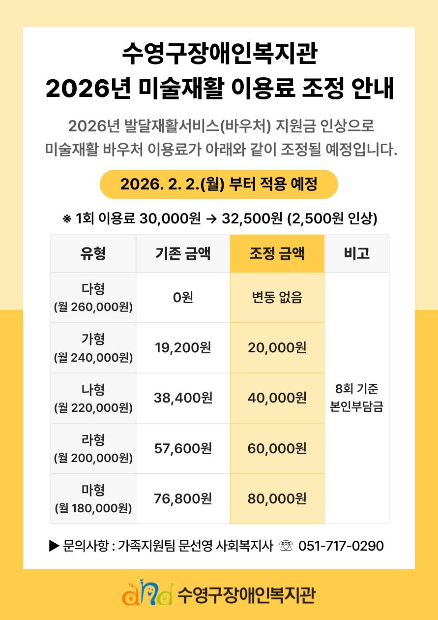 2026년 미술재활 바우처 이용료 인상 안내